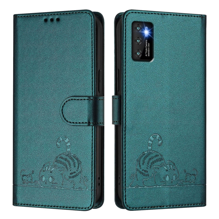 Funda de Cuero RFID Cubot A10 con Cordón Patrón Gato y Rata (Verde Pavo Real)