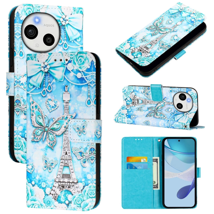 Funda de Cuero para Sharp Aquos R9 Pro Sh-54E con Dibujo Mariposa en Forma de Torre