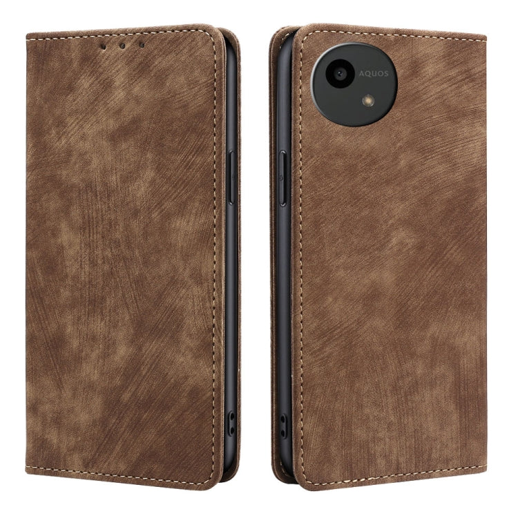 Funda de Cuero Magnética Antirrobo RFID para Sharp Aquos Wish4 (Marrón)