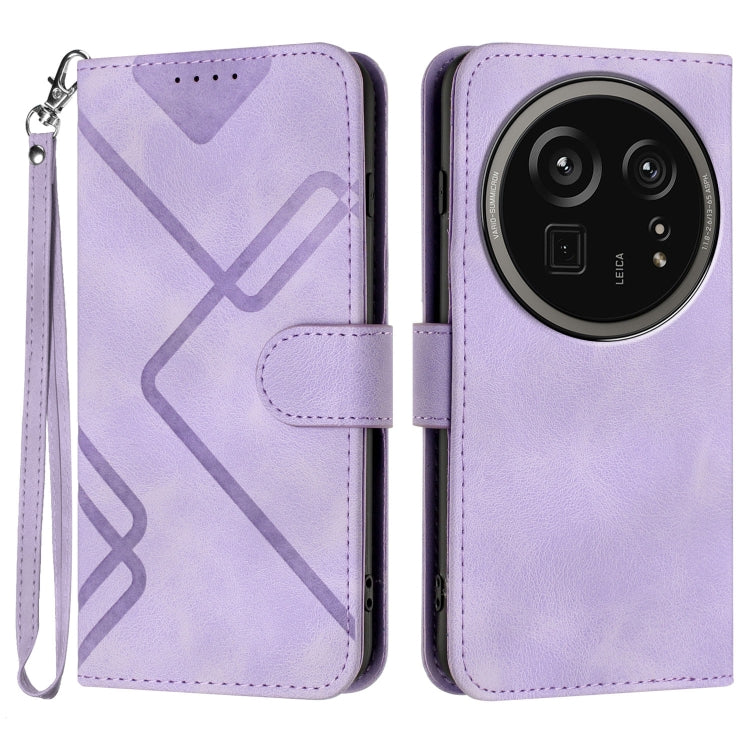 Funda de Cuero para Sharp Aquos R9 Pro con Diseño de Líneas y Tacto Suave (Morado Claro)