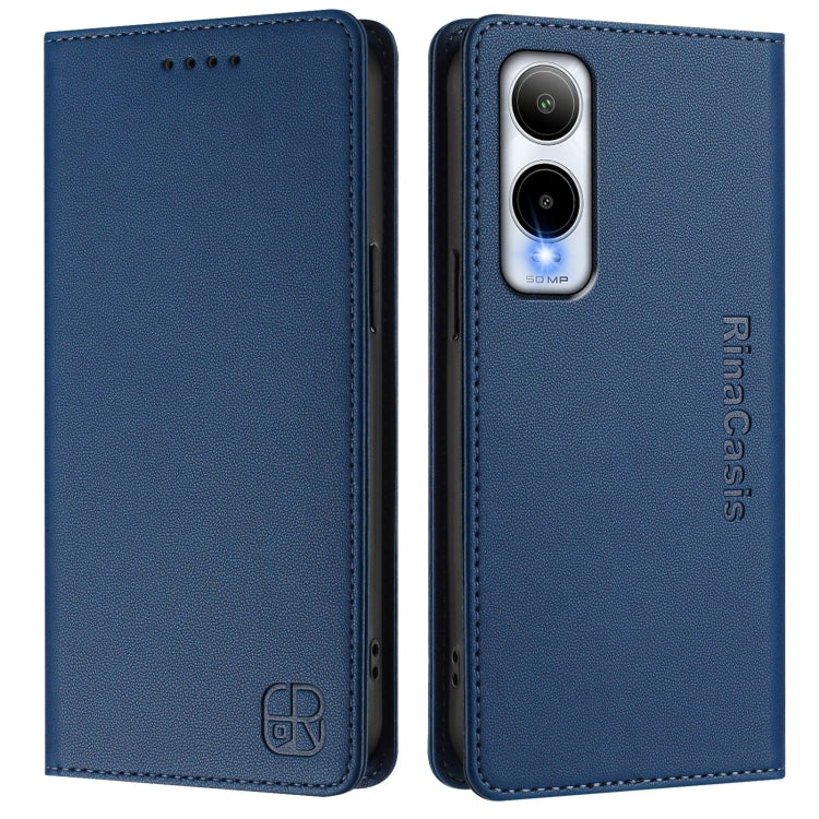 Funda de Cuero para Cubot A10 Rc01 con Doble Pliegue y Succión Magnética Rfid (Azul Oscuro)