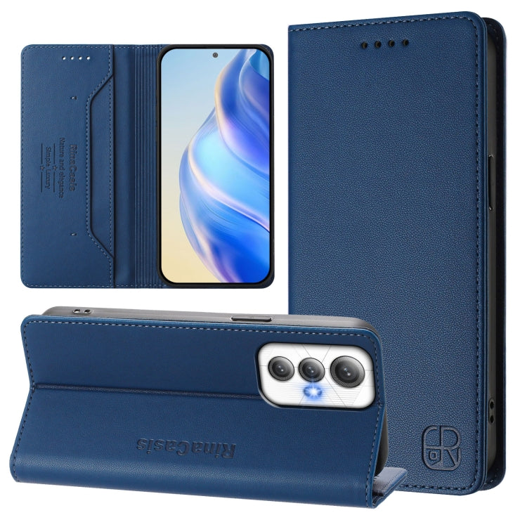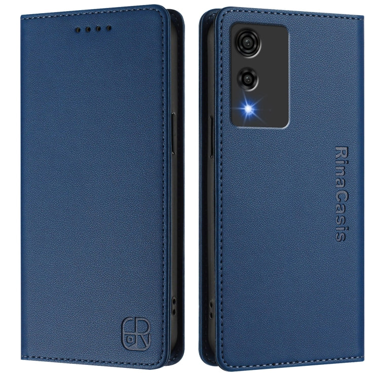 Funda de Cuero con Doble Pliegue y Succión Magnética Rfid para Cricket Icon 6 Rc01 (Azul Oscuro)