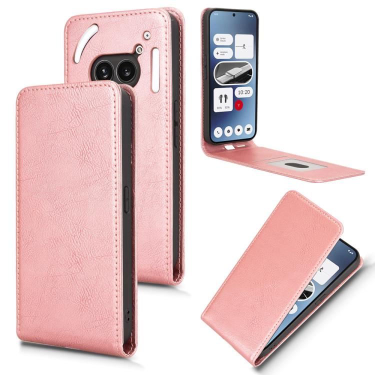 Funda de Cuero Magnética con Tapa Vertical para Nothing Phone 2A (Oro Rosa)