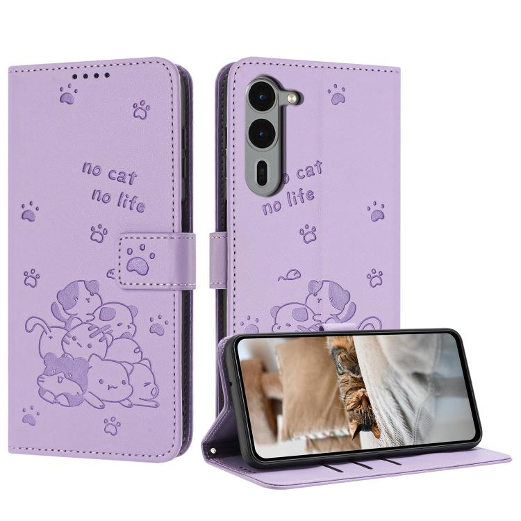 Funda de Cuero Rfid con Relieve Sonriente para Cubot Note 40 (Morado Claro)