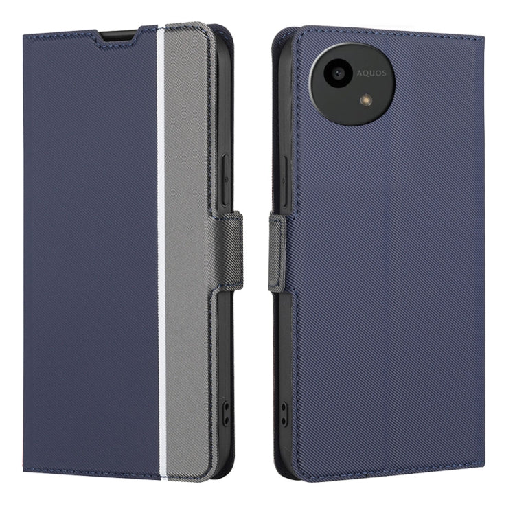 Funda de Cuero con Textura de Sarga y Botones Laterales para Sharp Aquos Wish4 (Azul)