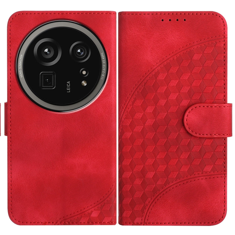 Funda de Cuero para Sharp Aquos R9 Pro con Relieve Cabeza de Elefante y Cordón (Rojo)