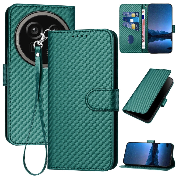 Funda de Cuero para Sharp Aquos R9 Pro Yx0070 con Hebilla de Fibra de Carbono y Cordón (Verde Oscuro)