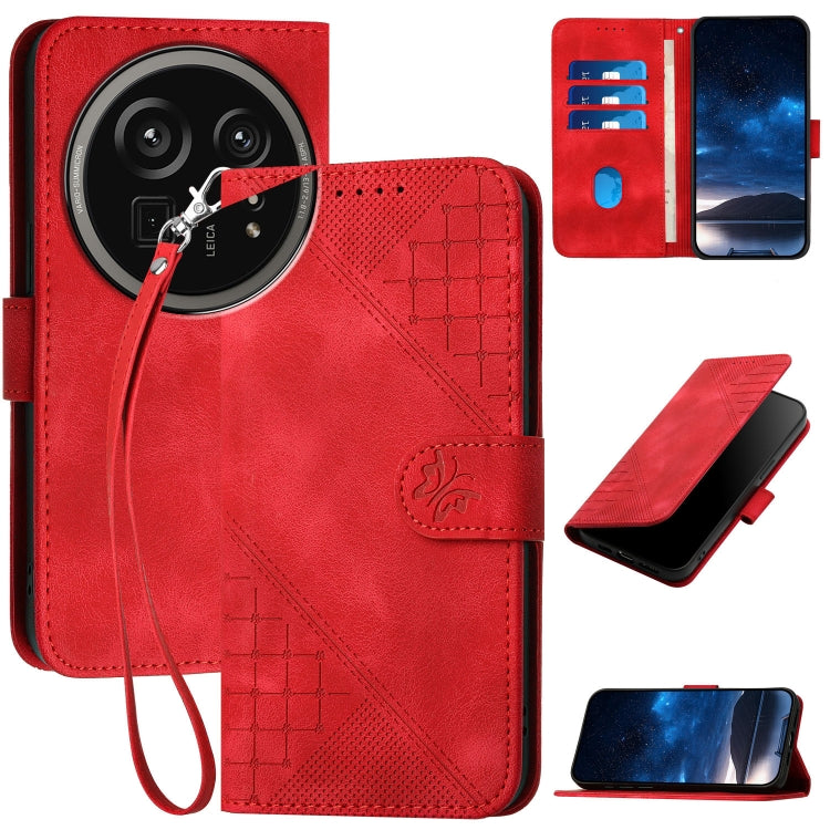 Funda de Cuero para Sharp Aquos R9 Pro con Diseño de Mariposa En Relieve y Cordón (Rojo)