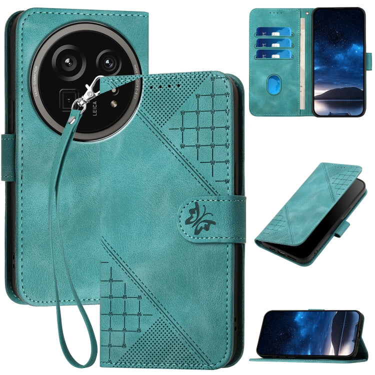 Funda de Cuero para Sharp Aquos R9 Pro con Diseño Mariposa en Relieve y Cordón (Azul Claro)