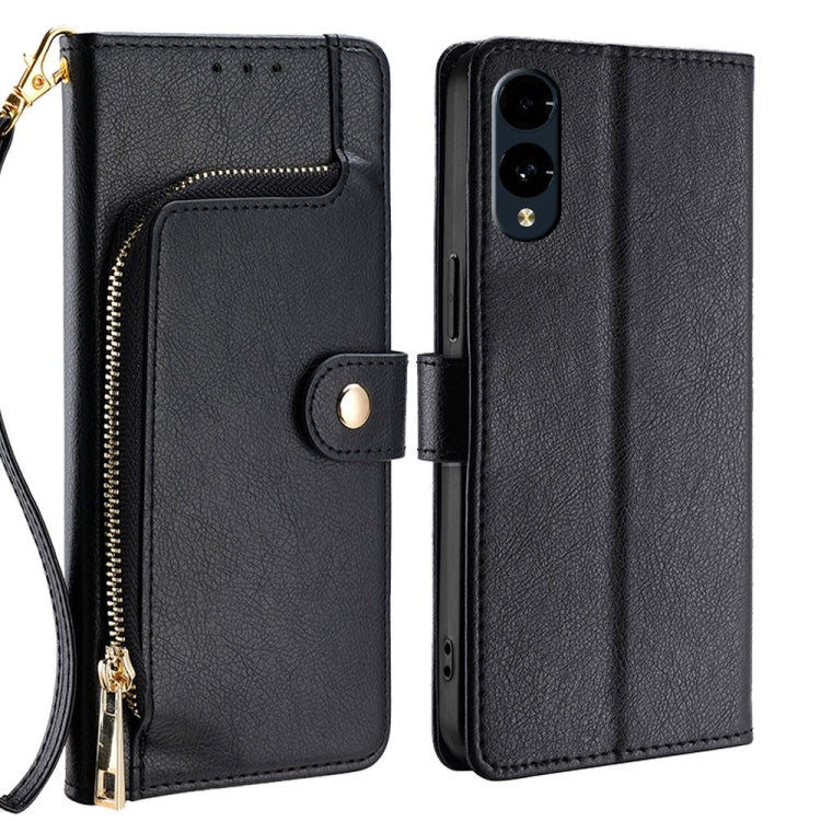 Funda de Cuero con Cremallera para Teléfono Sharp Aquos Wish4 (Negra)