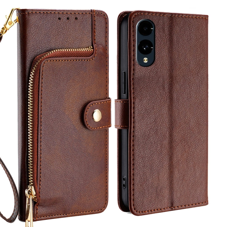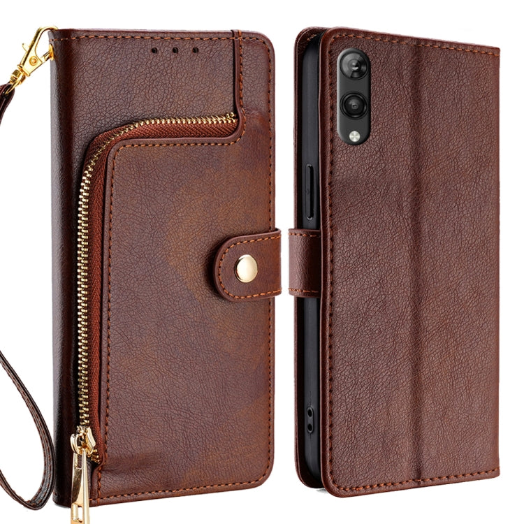 Funda de Cuero con Cremallera para Teléfono Sharp Aquos Wish4 (Marrón)