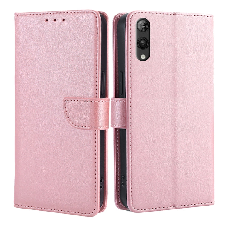 Funda de Cuero con Tapa y Hebilla para Teléfono Rakuten Hand 5G (Oro Rosa)