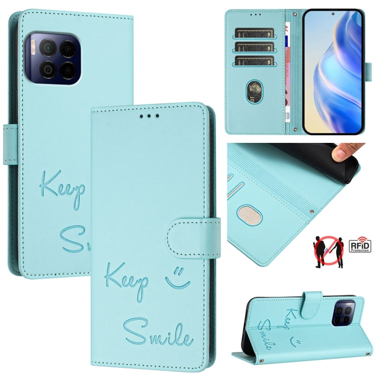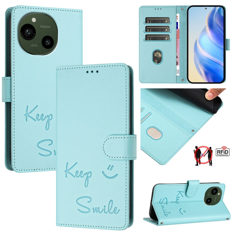 Funda de Cuero Rfid con Relieve Sonriente para Teléfono Fujitsu Arrows We2 Plus (Verde Menta)