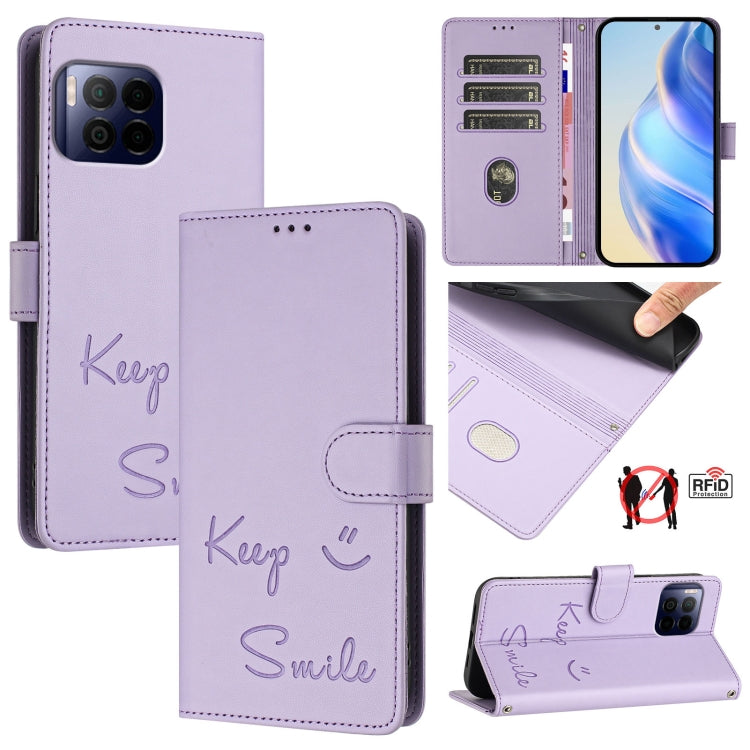 Funda de Cuero Rfid con Relieve Sonriente para Teléfono T-Mobile Revvl 6/6X 5G (Morado Claro)