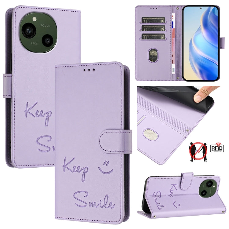 Funda de Cuero Rfid con Relieve Sonriente para Sharp Aquos R9 (Morado Claro)