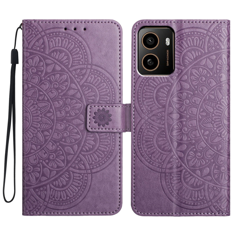 Funda de Cuero con Relieve de Flores para Teléfono Hmd Pulse+ (Morado)