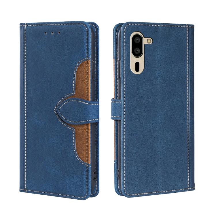 Funda para Sharp Sencillo Sumaho 5 de Cuero con Hebilla Magnética y Sombrero de Paja (Azul)