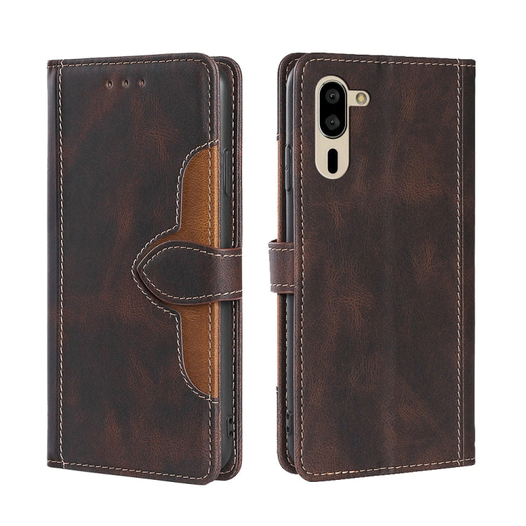 Funda para Sharp Sumaho 5 Piel Sombrero de Paja Caja de Cuero con Hebilla Magnética (Marrón)