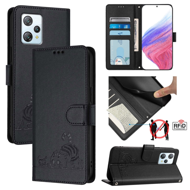 Estuche para Teléfono BlackView A52 Cat Rat Cuero RFID con Patrón en Relieve y Cordón (Negro)