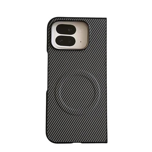 Funda Plegable Cuero y Fibra de Carbono para Google Pixel 9 Pro con Tapa Magsafe (Negra)