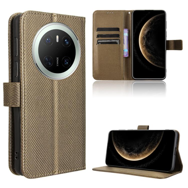 Funda de Cuero con Textura de Diamante para Huawei Mate 70 (Marrón)