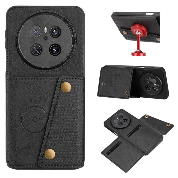 Funda Magnética para Huawei Mate 70 con Ranuras para Tarjetas y Doble Hebilla (Negra)