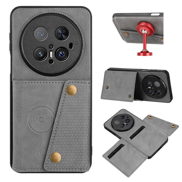 Funda Magnética Huawei Mate 70 Pro/70 Pro+ con Ranuras para Tarjetas y Doble Hebilla (Gris)