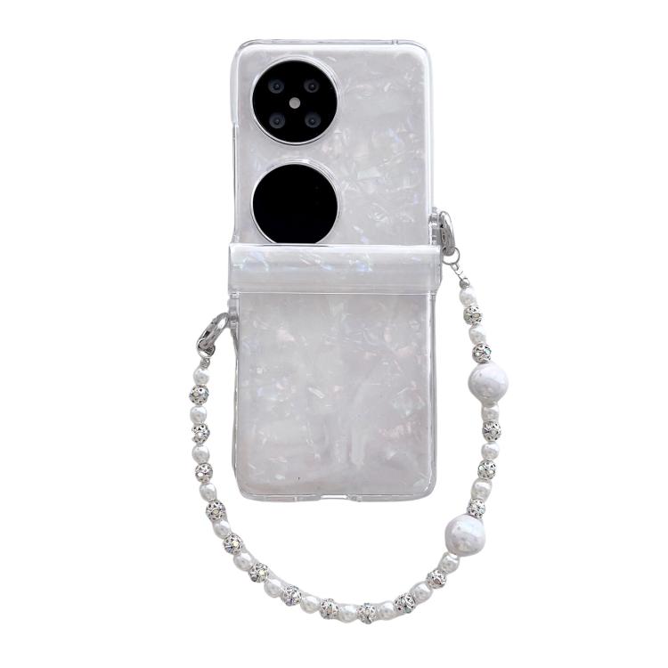 Funda para Teléfono Huawei P50 Pocket Textura Perlada en Tres Partes con Pulsera (Blanca)