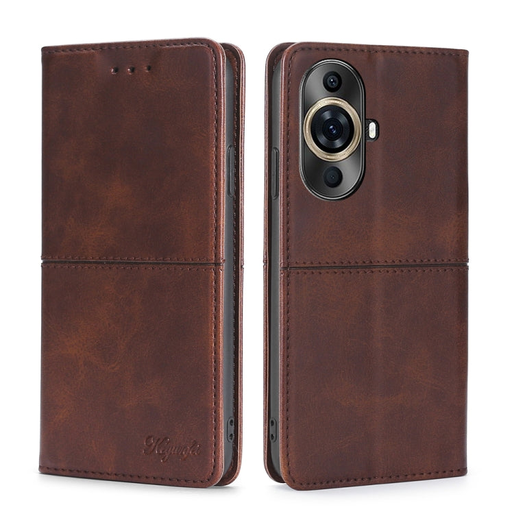 Funda de Cuero Magnético para Huawei Nova 11 4G con Textura de Vaca (Marrón Oscuro)