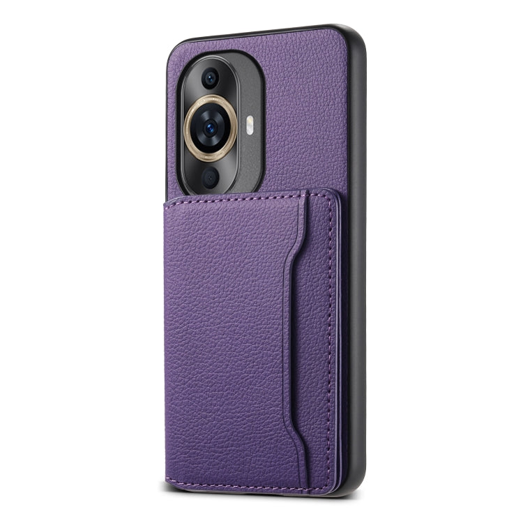 Funda para Huawei Nova 11 con Diseño Bolsa para Tarjetas y Textura de Becerro (Púrpura)