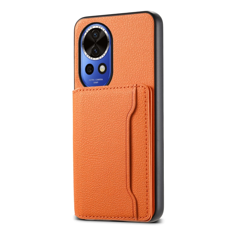 Funda para Huawei P60 con Diseño de Bolsa de Tarjeta y Textura de Pantorrilla (Naranja)