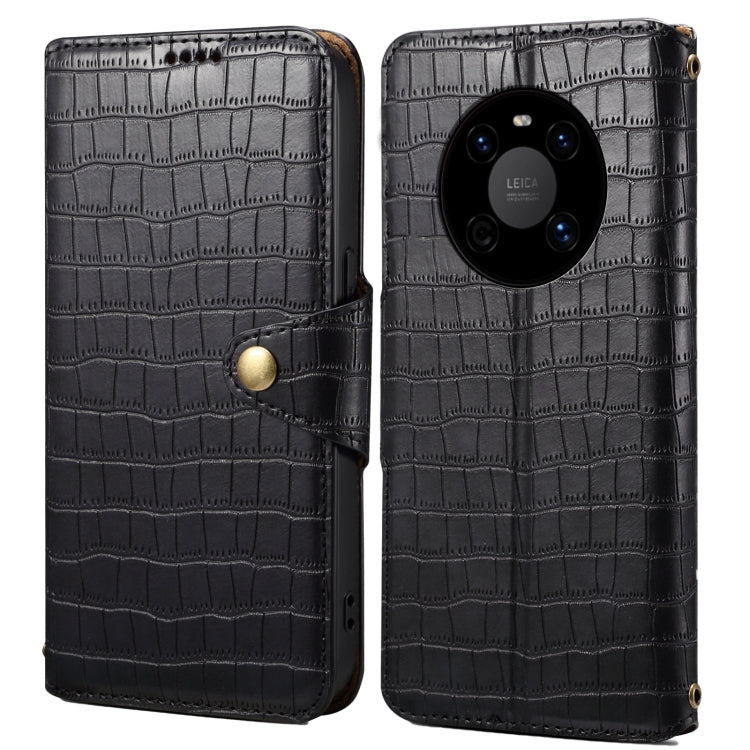 Funda para Huawei Mate 40 Denior de Cuero con Borde de Aceite y Textura de Cocodrilo (Negro)