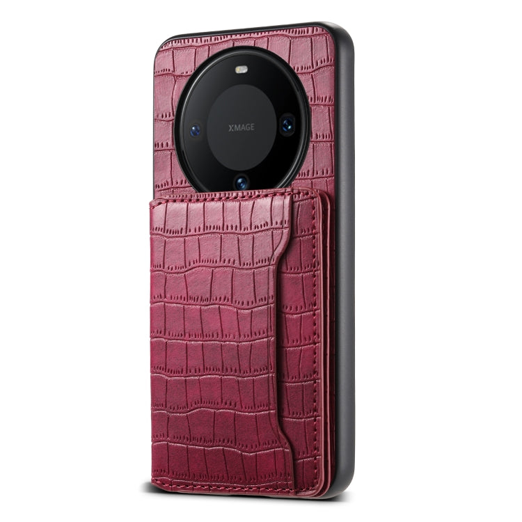 Funda para Huawei Mate 60 con Diseño Bolsa para Tarjetas y Textura de Cocodrilo (Rojo)