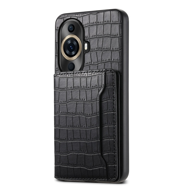 Funda para Huawei Nova 11 Pro con Diseño Bolsa para Tarjetas y Textura de Cocodrilo (Negro)