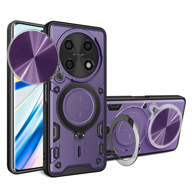 Funda para Teléfono Huawei Nova Y91 4G con Soporte Magnético Deslizante y Textura de Cd (Morado)