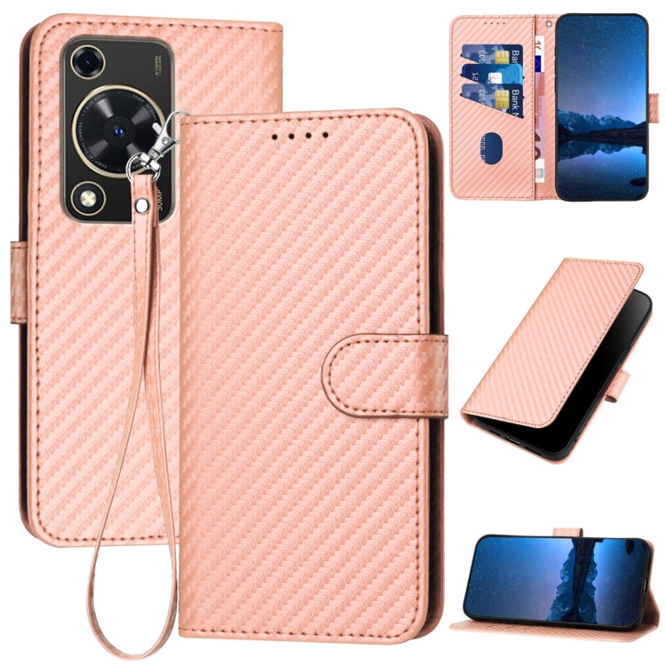 Funda de Cuero Huawei Mate 60 Yx0070 con Hebilla de Fibra de Carbono y Cordón (Rosa)