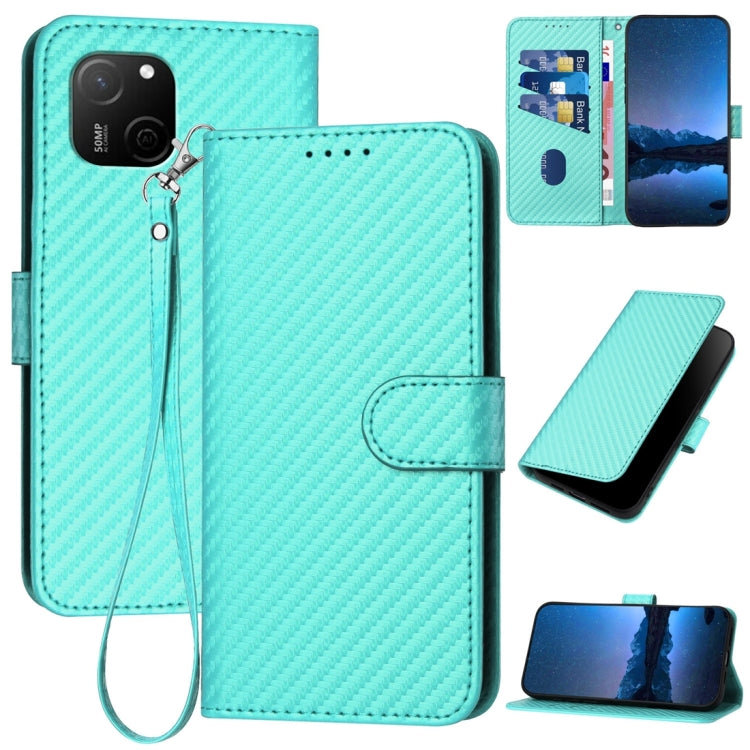Funda de Cuero para Huawei P40 Yx0070 con Hebilla de Fibra de Carbono y Cordón (Verde Oscuro)