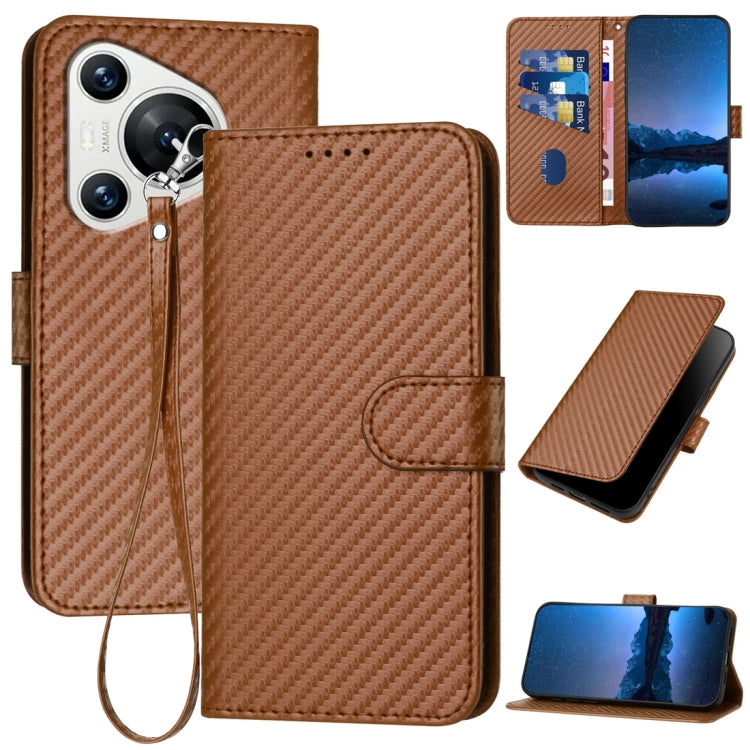 Funda de Cuero para Huawei Pura 70 Yx0070 con Hebilla de Fibra de Carbono y Cordón (Café)