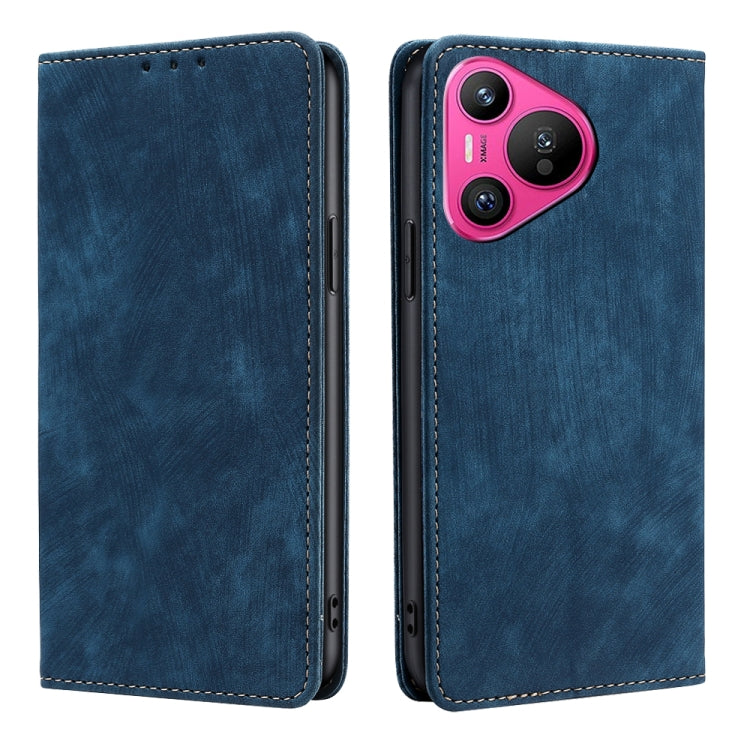 Estuche para Huawei Pura 70 de Cuero Magnético con Cepillo Antirrobo RFID (Azul)