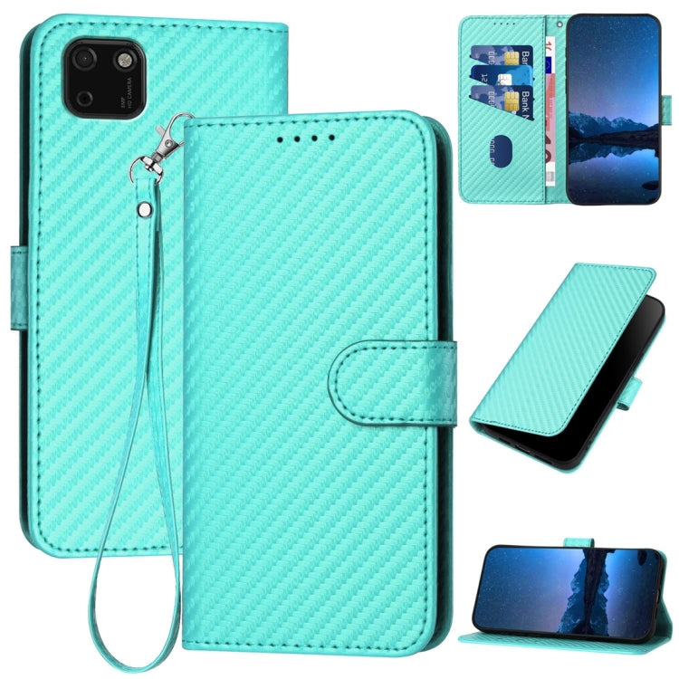 Funda de Cuero para Huawei Mate 60 Yx0070 con Hebilla de Fibra de Carbono y Cordón (Verde Oscuro)