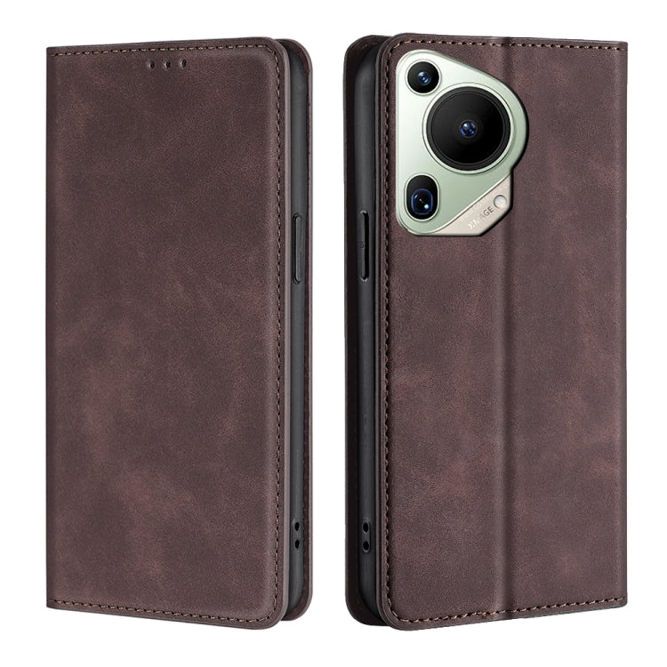 Funda de Cuero Magnética Huawei Pura 70 Skin Feel para Teléfono (Marrón Oscuro)