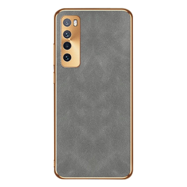 Funda de Cuero Piel de Cordero Galvanizada para Huawei Nova 7 (Gris)