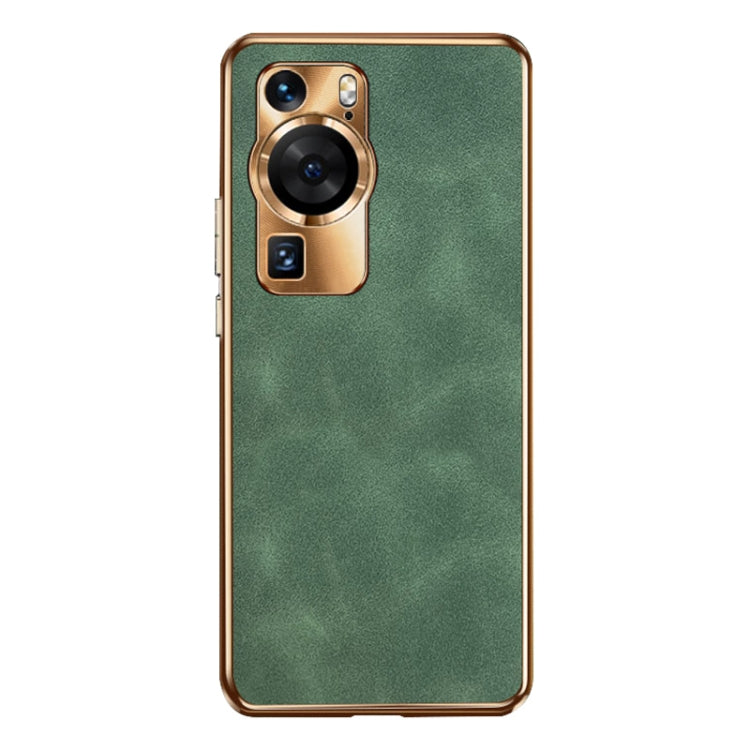 Funda para Huawei Pura 70 de Piel de Cordero con Galvanoplastia Ultra (Verde)