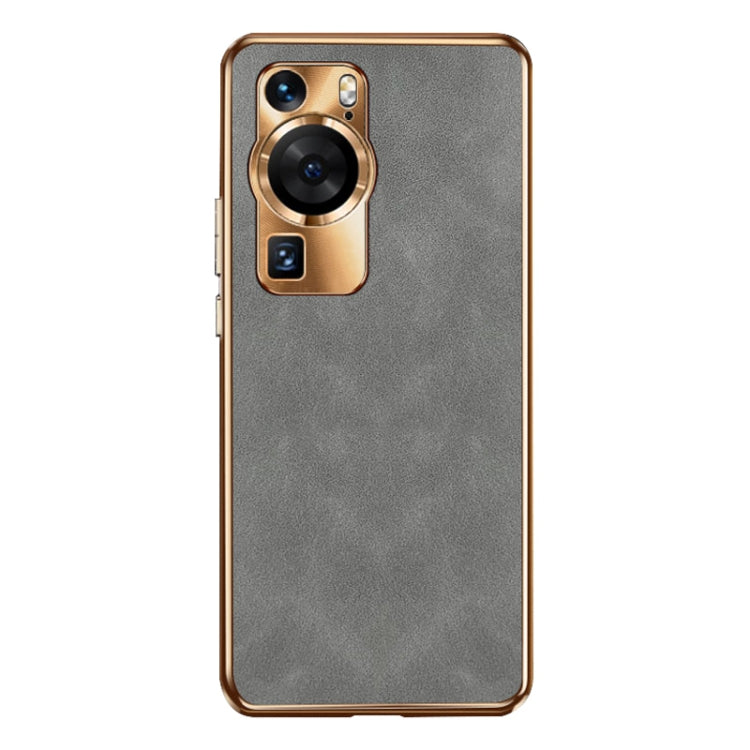 Funda de Cuero Piel de Cordero para Huawei Pura 70 con Galvanoplastia Ultra (Gris)