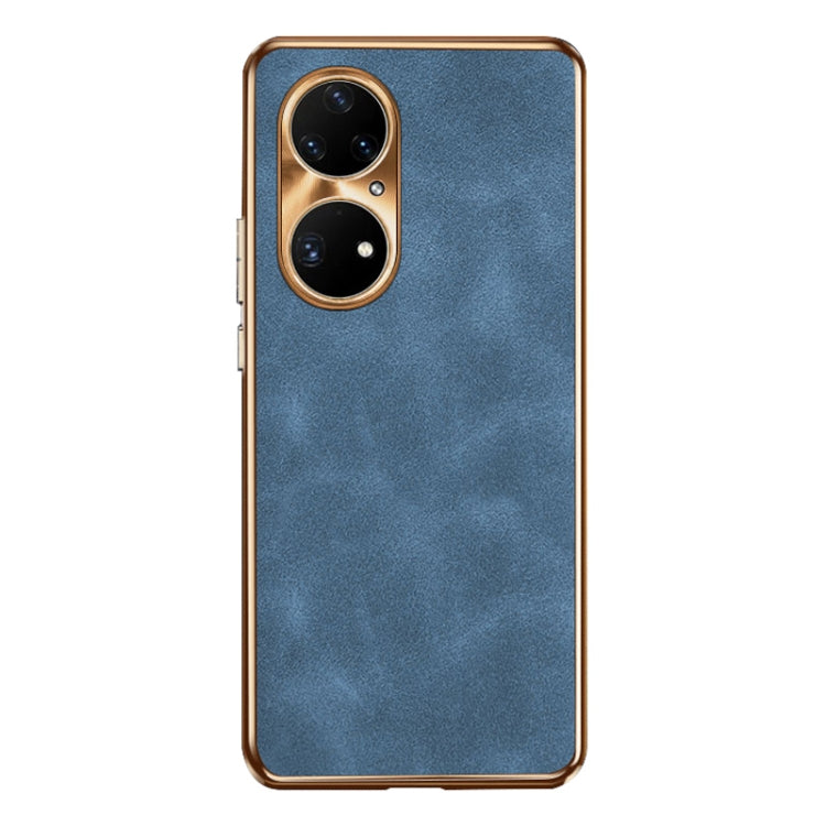 Funda de Cuero Piel de Cordero Galvanizada para Huawei P50 Pro (Azul)