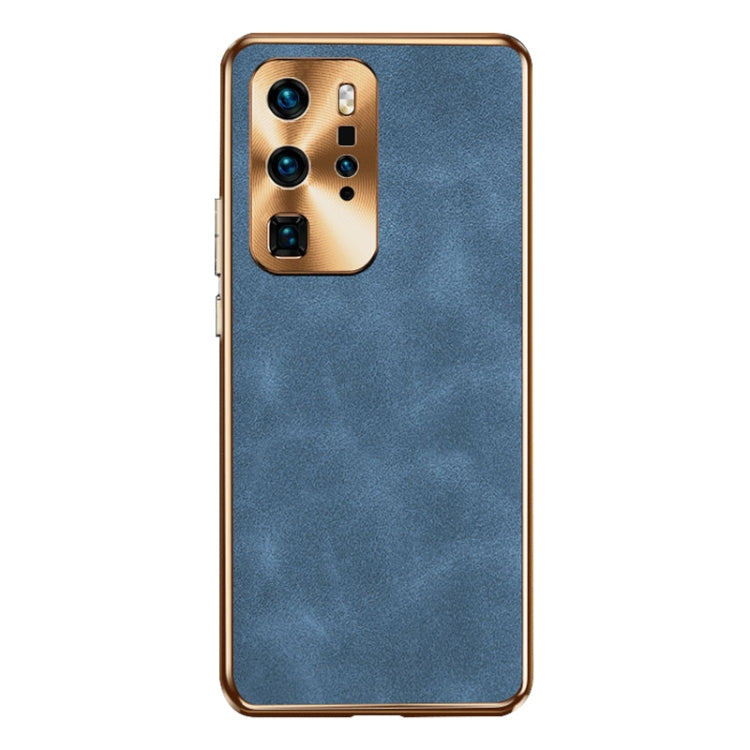 Funda de Cuero Piel de Cordero Galvanizada para Huawei P40 Pro (Azul)