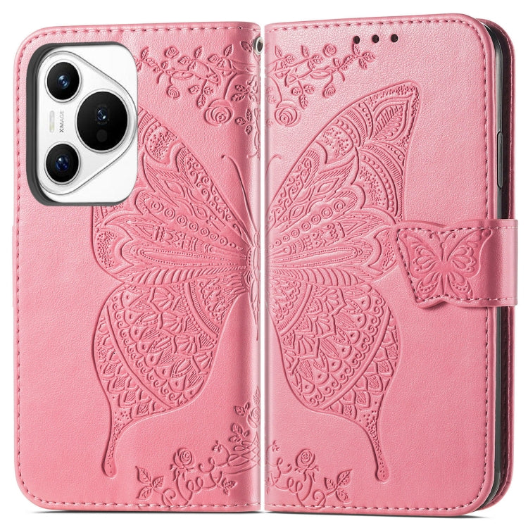 Funda de Cuero En Relieve para Huawei Pura 70 Ultra Butterfly Love Flower (Rosa)