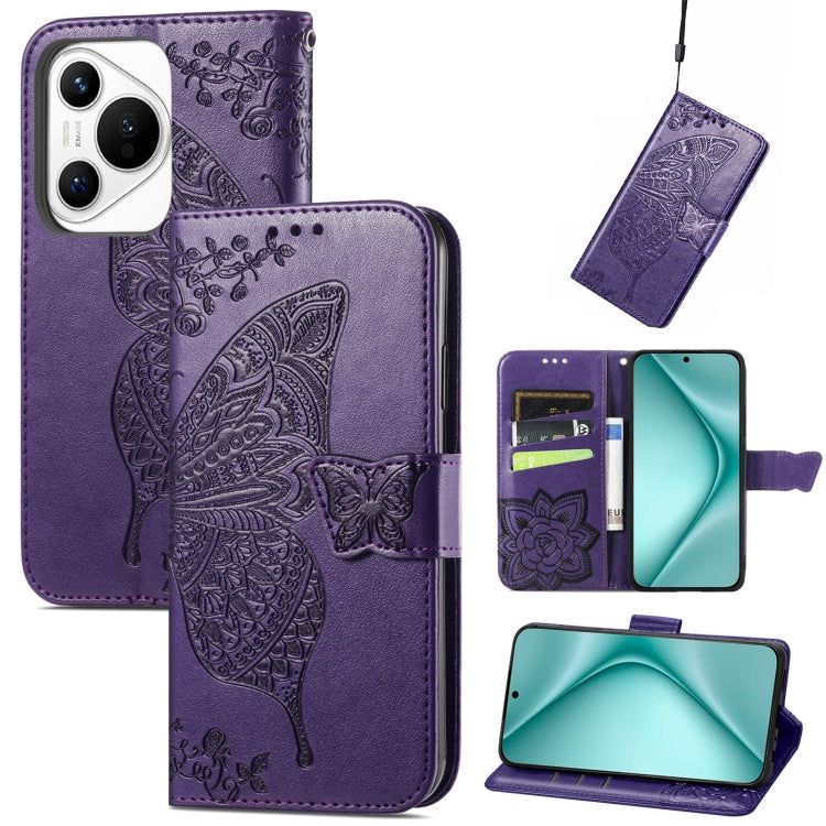 Funda de Cuero Huawei Pura 70 Pro Butterfly Love Flower en Relieve para Teléfono (Púrpura)
