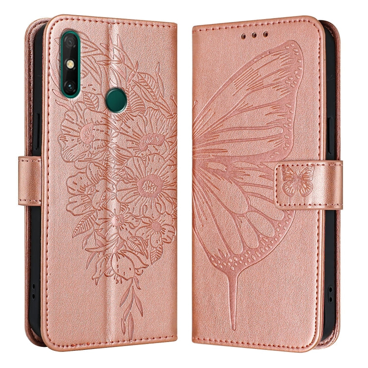 Funda de Cuero Huawei Enjoy 50 4G Nova Y70 Plus con Mariposa en Relieve (Oro Rosa)