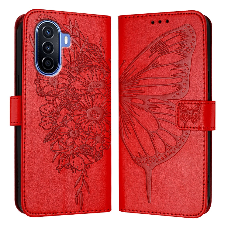 Funda de Cuero para Huawei Enjoy 50 4G y Nova Y70 Plus con Mariposa en Relieve (Rojo)